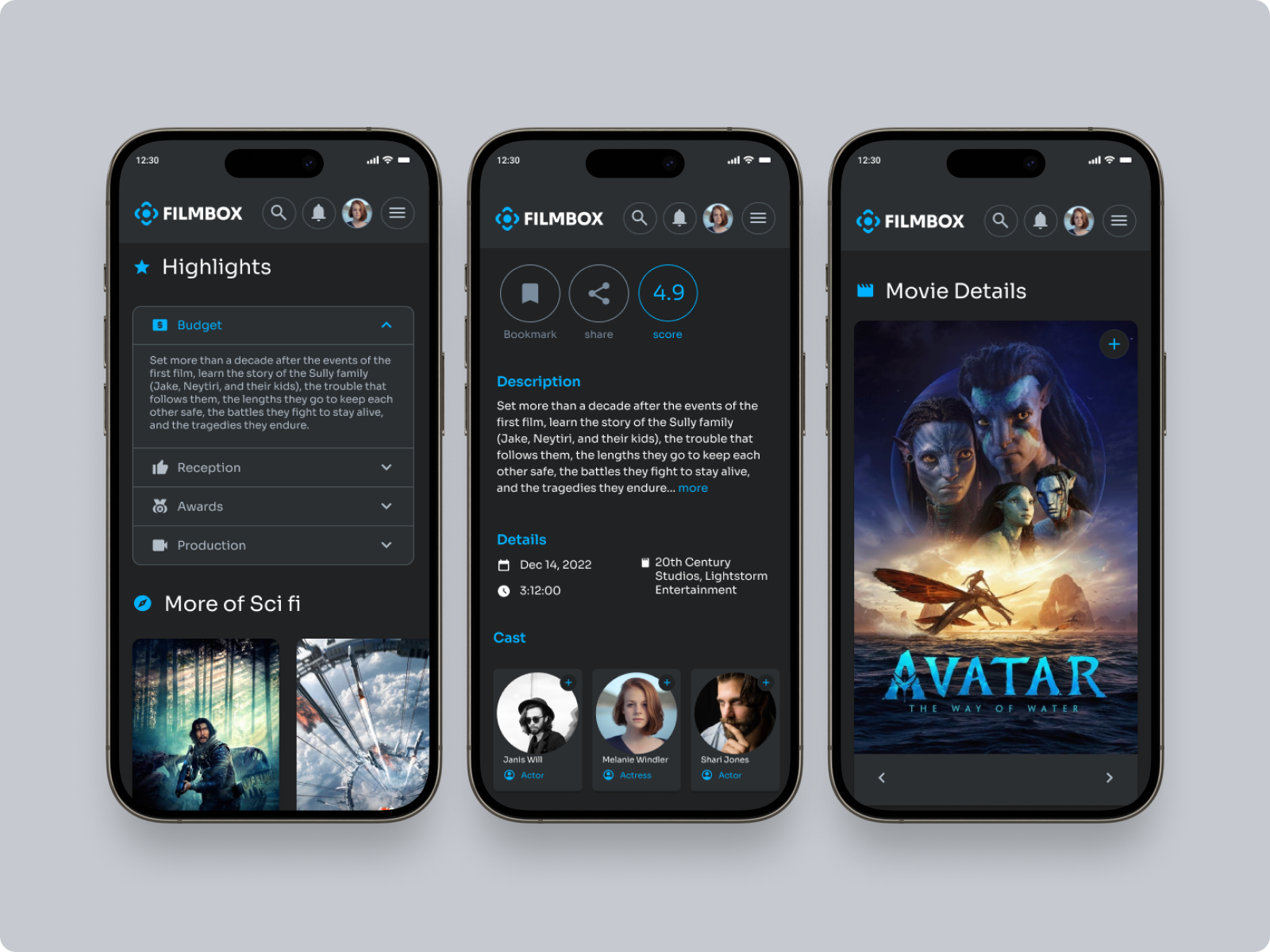 Filmbox, a movie and series portal, would aim to provide a visually appealing and easy-to-use platform for cataloging and browsing content. The platform features include a resourceful database of films and series, trailers and reviews, as well as social interaction capabilities.