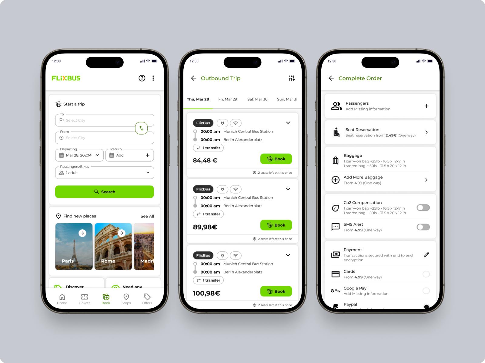 The project main goal was to modernize and standardize the Flixbus user interface. A new design system was created for this purpose. This new system aims to provide a set of visual tools for the company to communicate efficiently with their users and help them book their trips more easily.